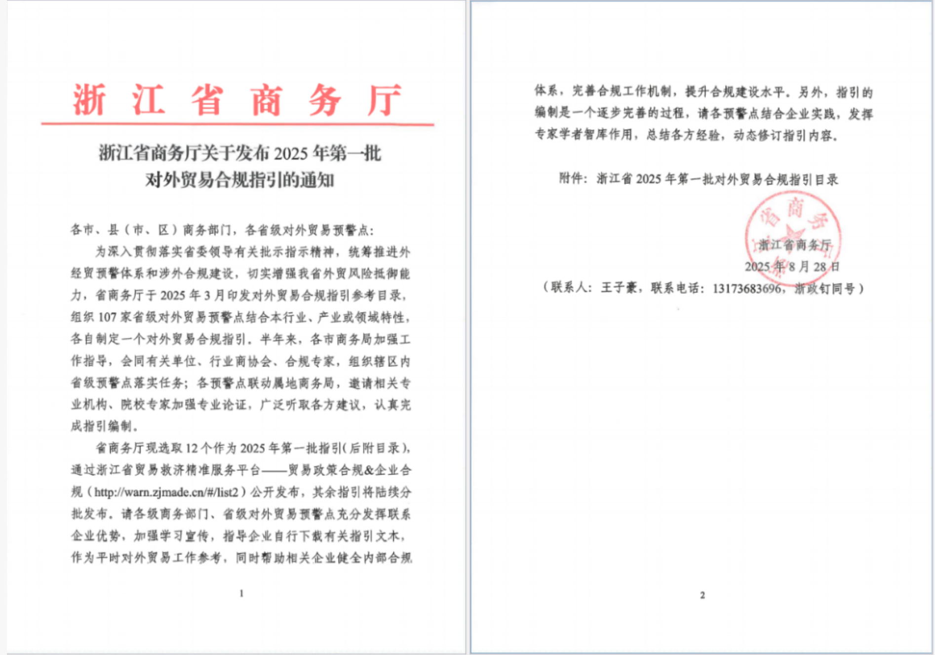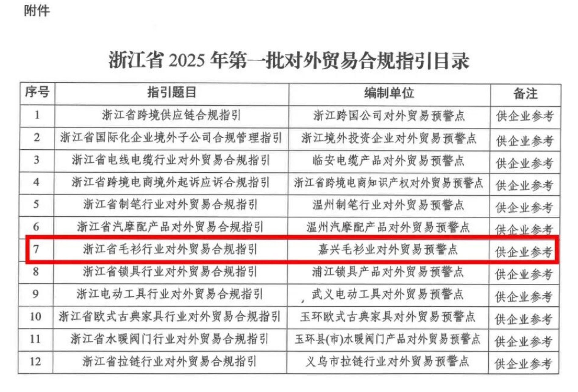 为深入贯彻浙江省人民政府推进外经贸企业合规体系建设的政策精神,具体落实浙江省商务厅编制对外贸易合规指引的规定要求,洪合毛衫商会作为毛衫行业的省级对外贸易预警点,牵头编制的《浙江省毛衫行业对外贸易合规指引》入选浙江省商务厅2025年第一批对外贸易合规指引!